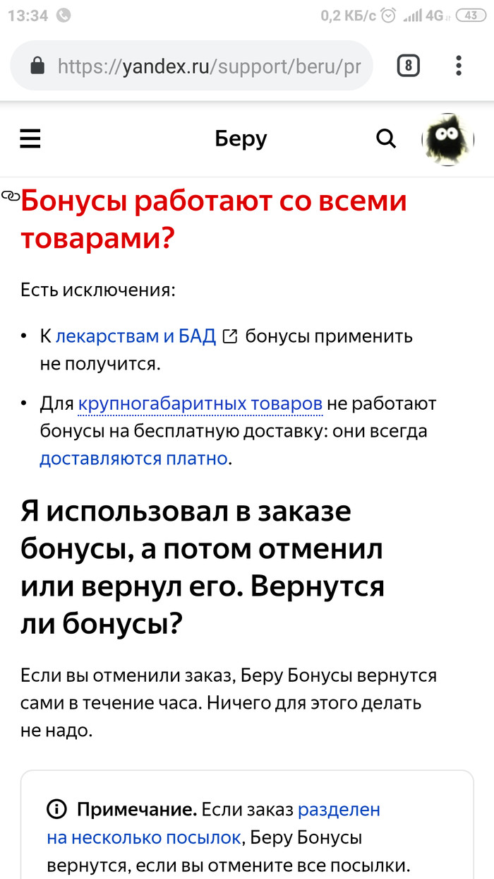 Бонусы Яндекс.Беру не для всех