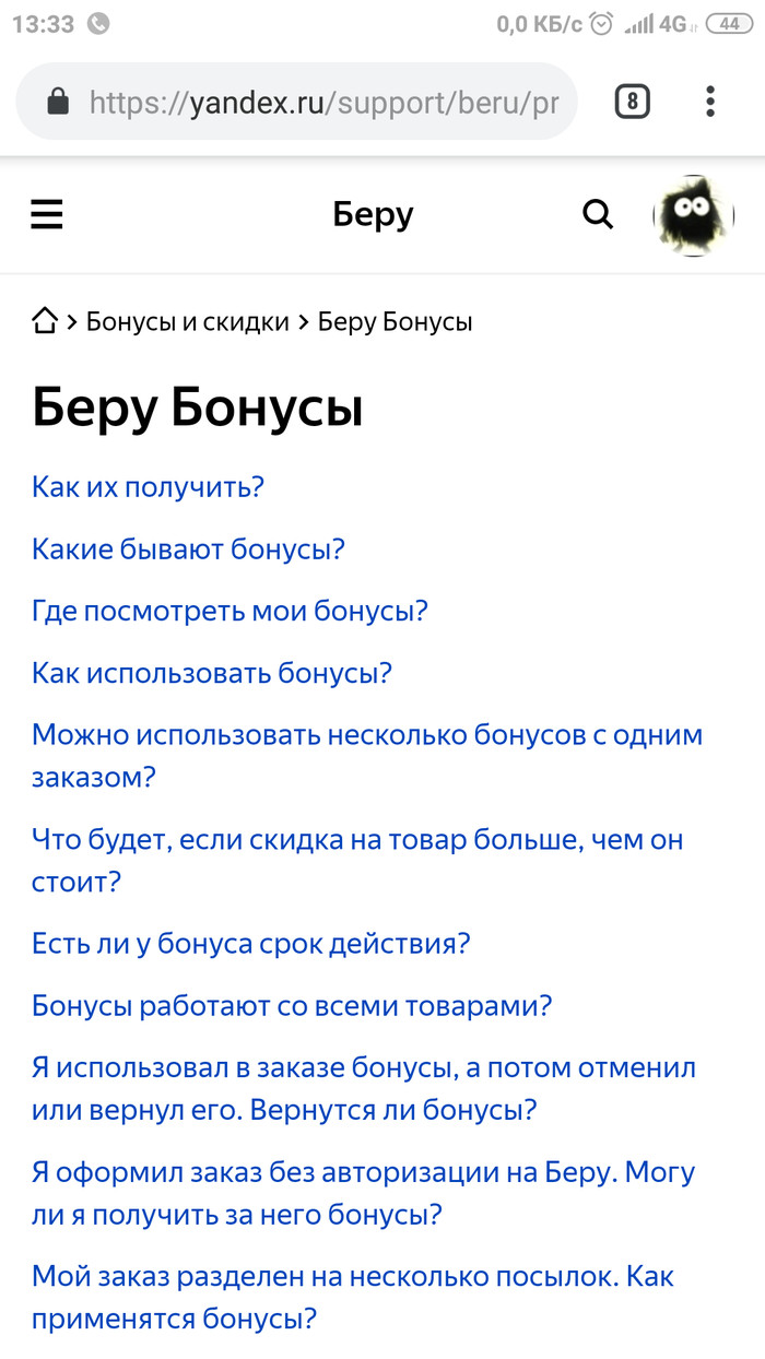 Видим ссылочку https://yandex.ru/support/beru/promo.html#bonus на якобы перечень товаров не попадающих под акцию. Иииии.... ссылка кидает нас на другую страницу, где нет никакого перечня, но есть ЧаВо по бонусам Беру:
