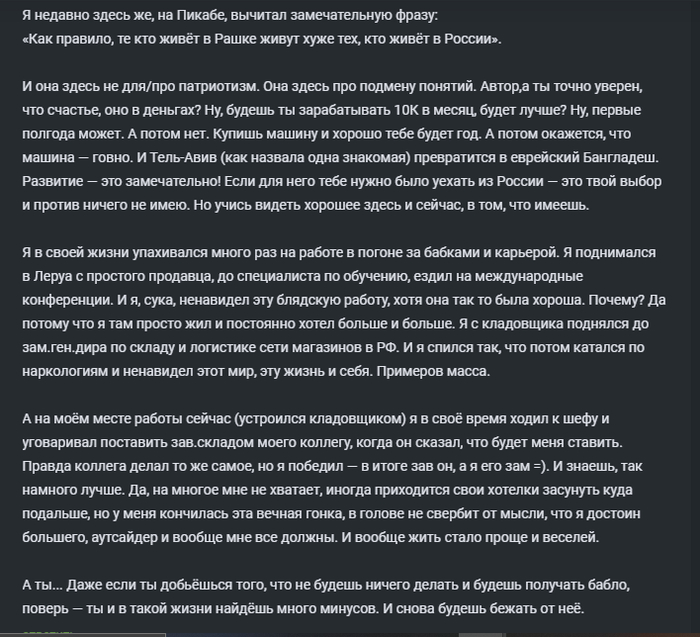 Я читаю ваши сообщения про «никто не ждёт», «пахать надо», «смысл уезжать без перспектив» — и знаете, я понимаю вас.