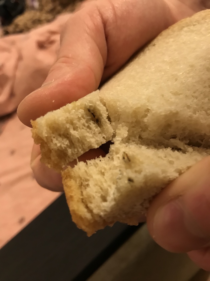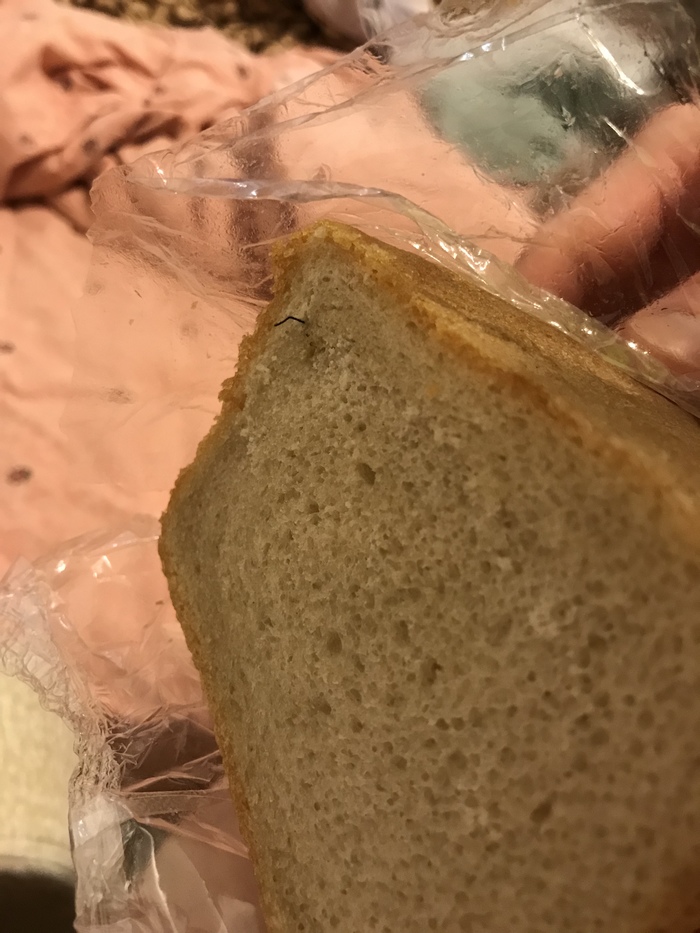 Добрый день! Купила вчера хлеб в Магните, парень сегодня резал его и нож воткнулся в проволку ! Внутри видно ржавчину на хлебе от неё, проволка твёрдая стальная, что с этим делать и куда обращаться? И будте осторожнее ! Представляю если бы нож не наткнулся на неё, а например кусок хлеба отправился бы желудок. Брр.