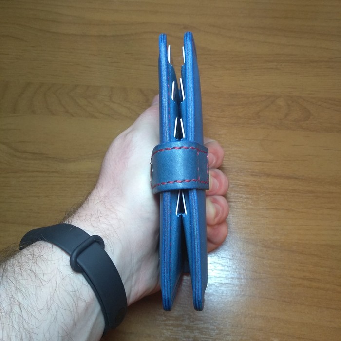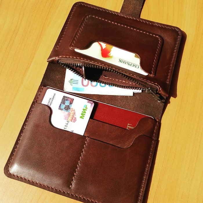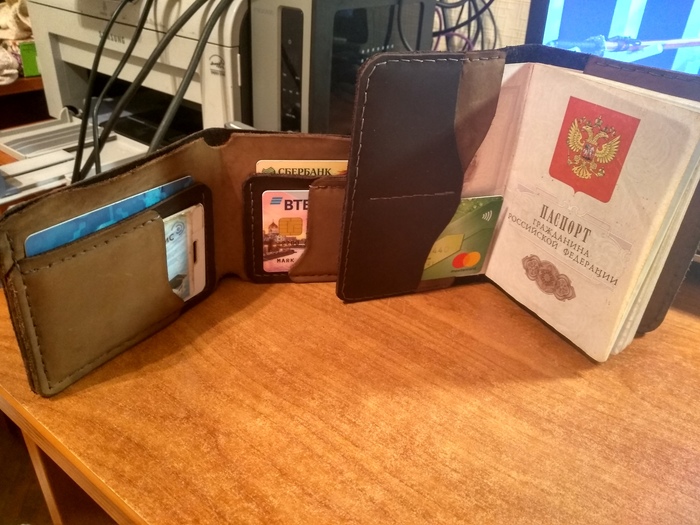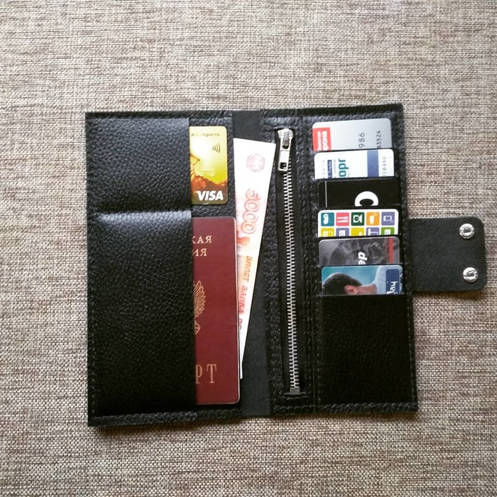 Кстати, этот портфель достаточно быстро убедил меня в свой несостоятельности, и был разобран. А совсем недавно получил вторую жизнь, став портмоне/лонгером (похожем на тот, что будет сейчас ниже, но это не он) и отправившись радоваться шефа в качестве подарка на 23 февраля.