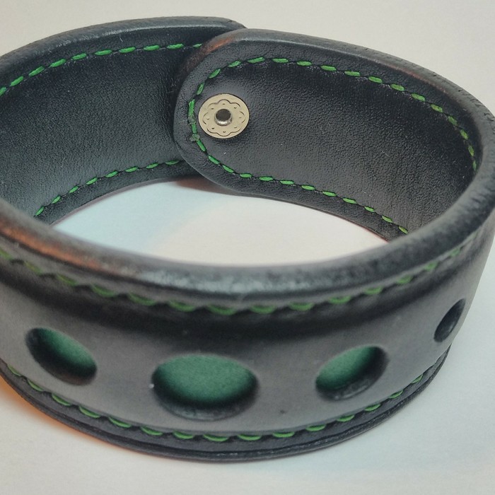 Тогда я ещё не знал (ну точнее только слышал), что такое токонол, но зато дома у меня был ПВА, которым я вполне успешно(как мне казалось) загладил бахтарму сумки. На сколько мне известно,сумка вполне успешно эксплуатируется по сей день. Тут (да и на большинстве последующих изделиях) для проделывания отверстий под шов я использовал одинарный высечной пробойник 1 мм, шаг был 5 мм, ибо размечалось всё по линейке с помощью серебряного стержня.