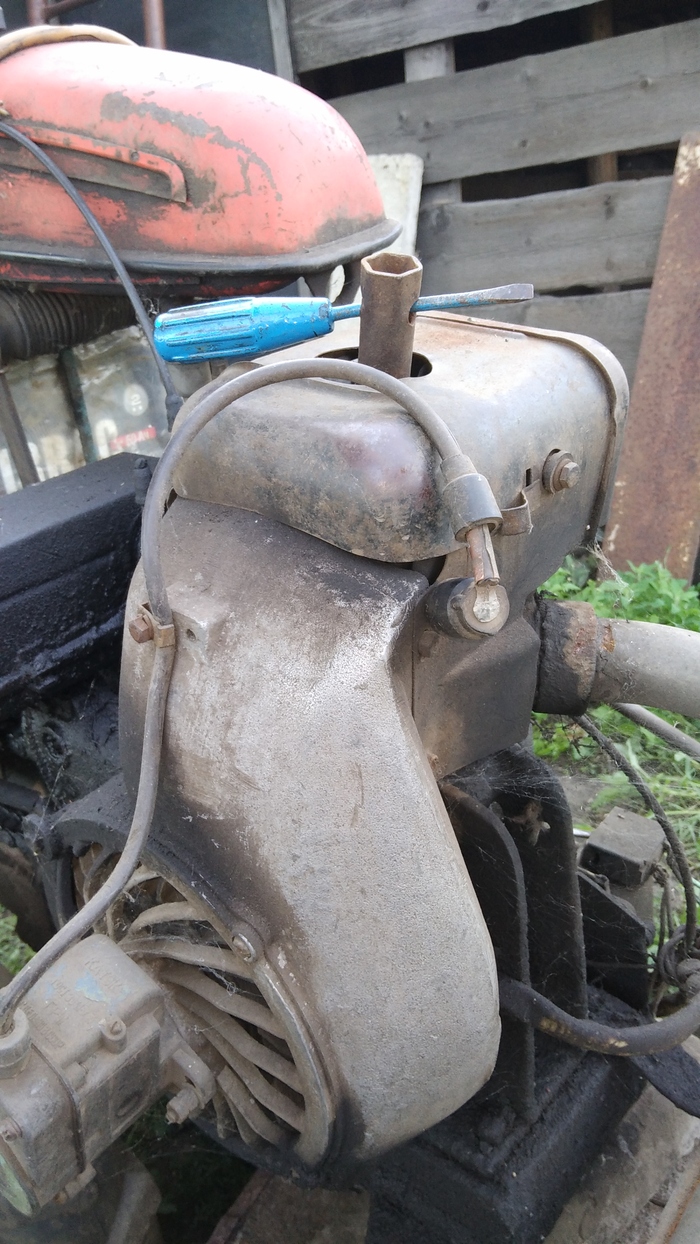 Свеча, как всегда, в масле , стартер облегчит пуск , это не на ручке "смикать" , старшее поколение и с "толкача" заводило...