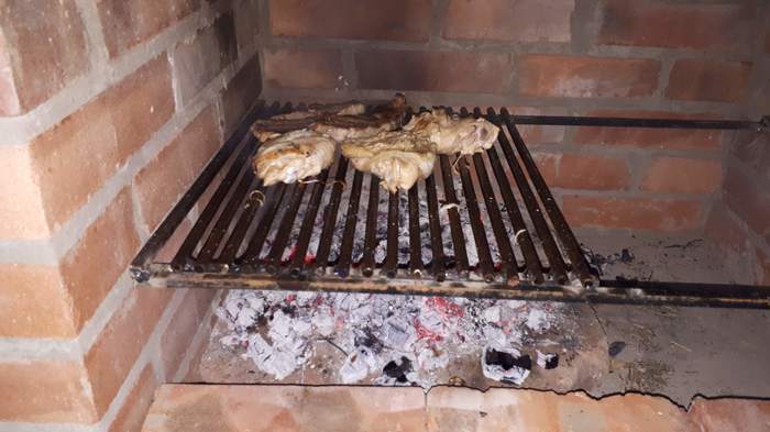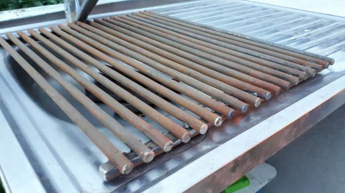 Нержавейку в нашей деревне я так и не нашел, пришлось вымывать решетку до блеска и мазать подсолнечным маслом.