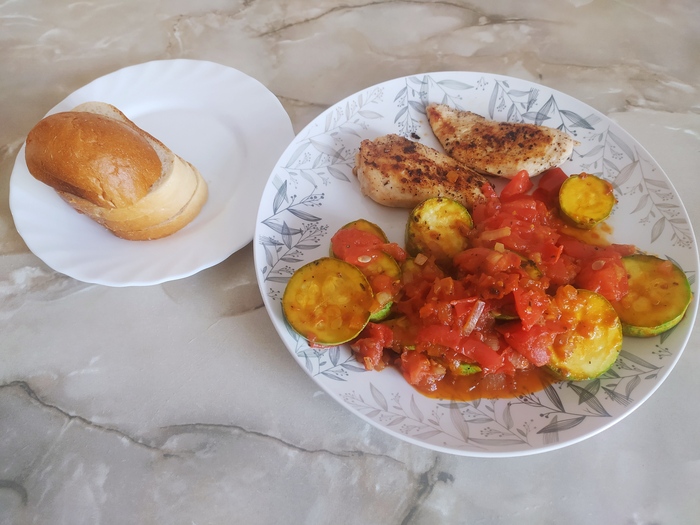 Обед решил сделать белковым. Всё же из куриной грудки просто пожаренный со специями стейк - это одно из самых вкусных и простых решений. На мой вкус это отличный сытный обед!