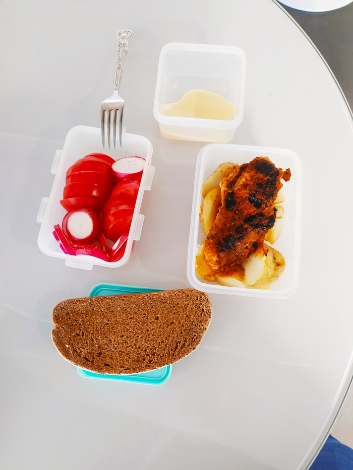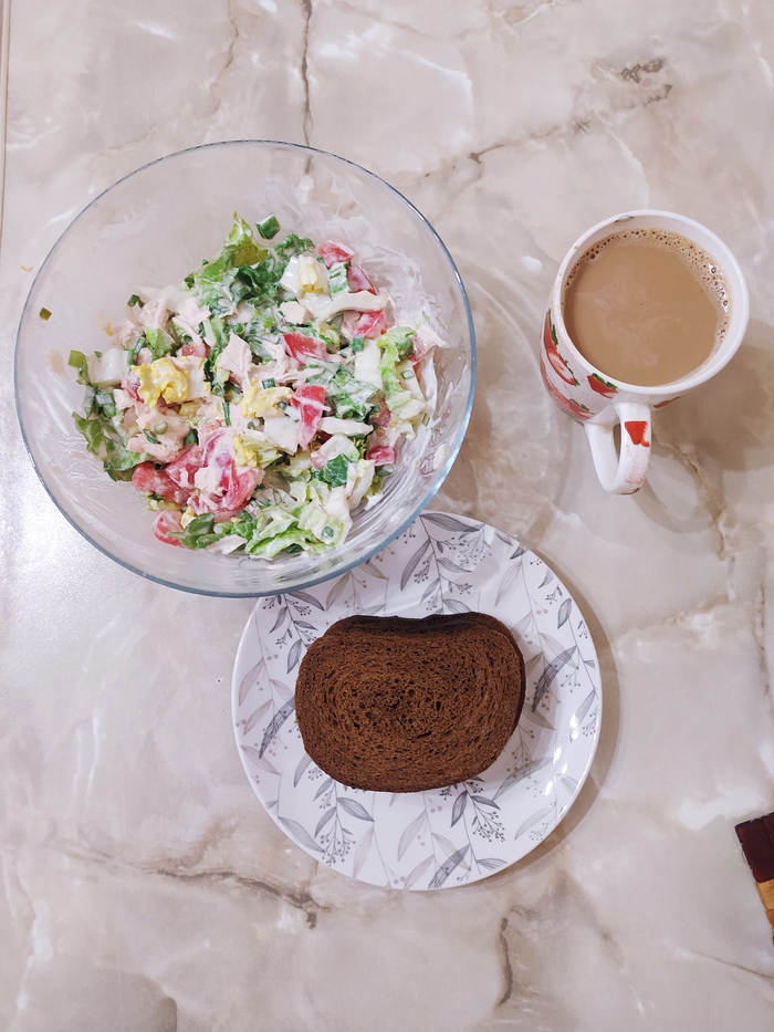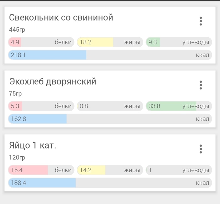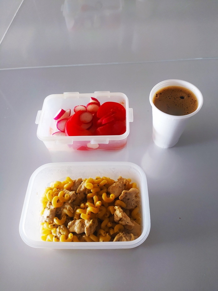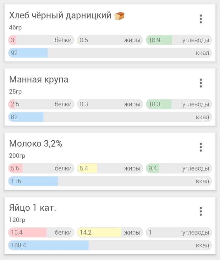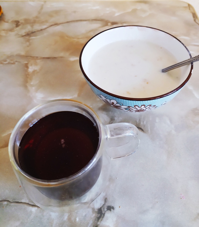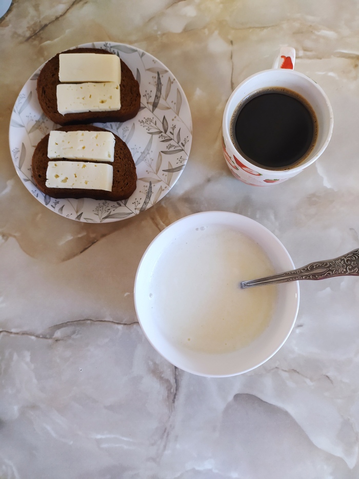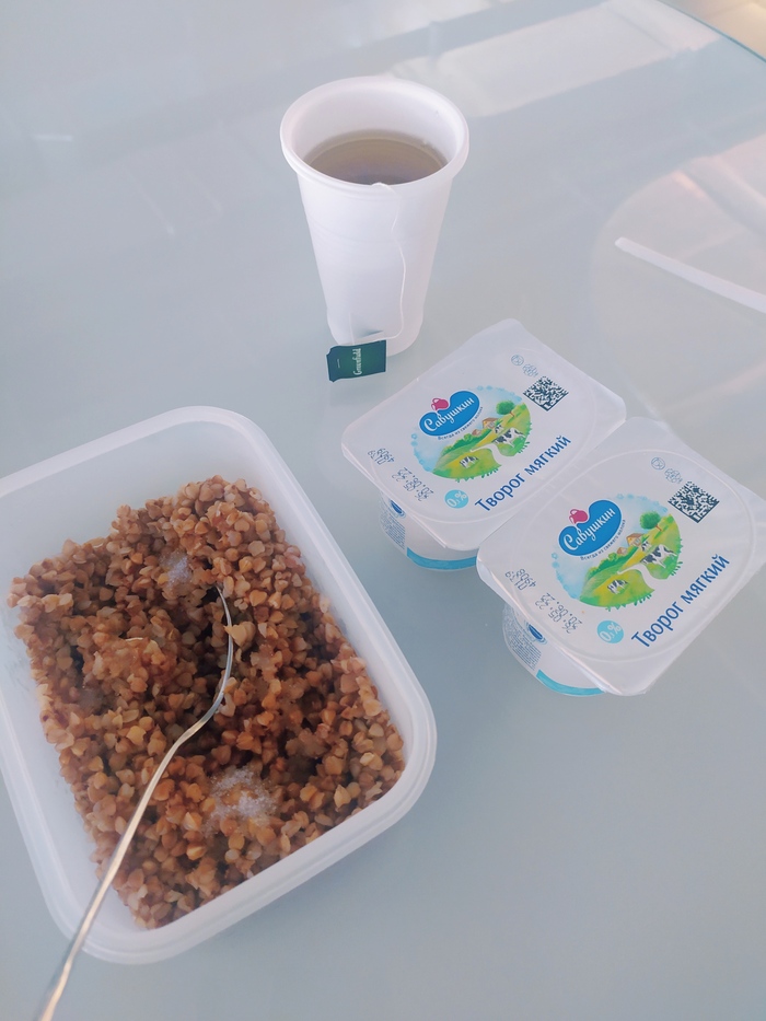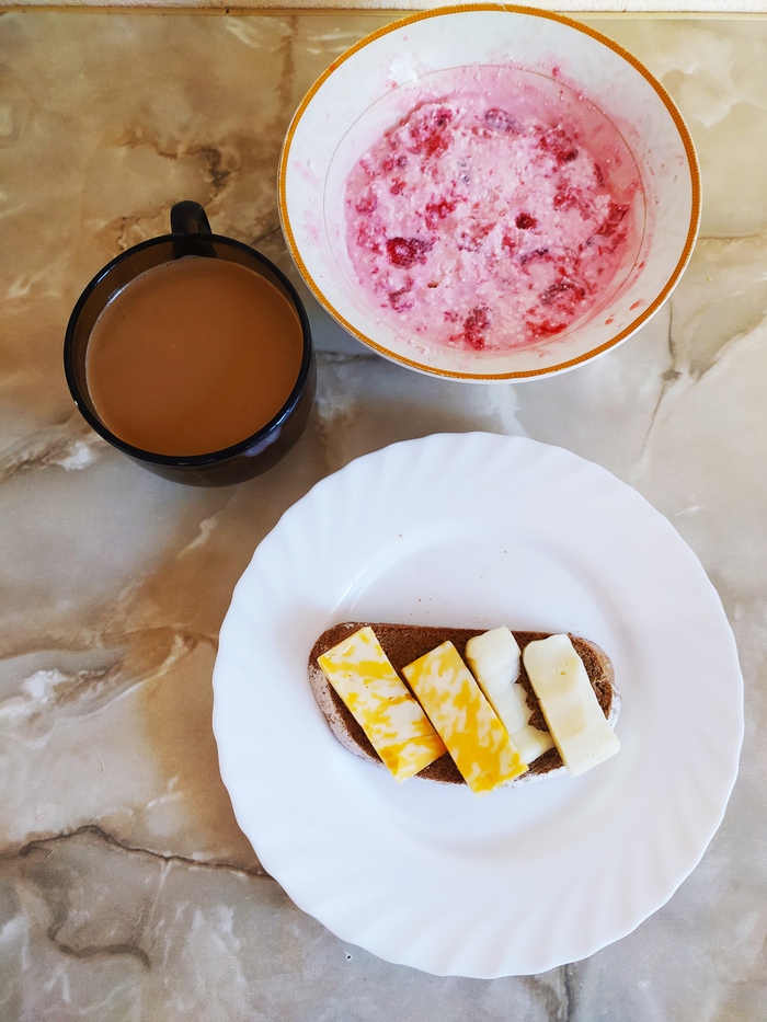 Утром особого голода не было. Но перед работой надо было поесть. Выбрал такой "классический вариант". Утром еле осилил его. Но правда часам к 11 уже стал ощущать чувство голода и пришлось потерпеть его до обеда.