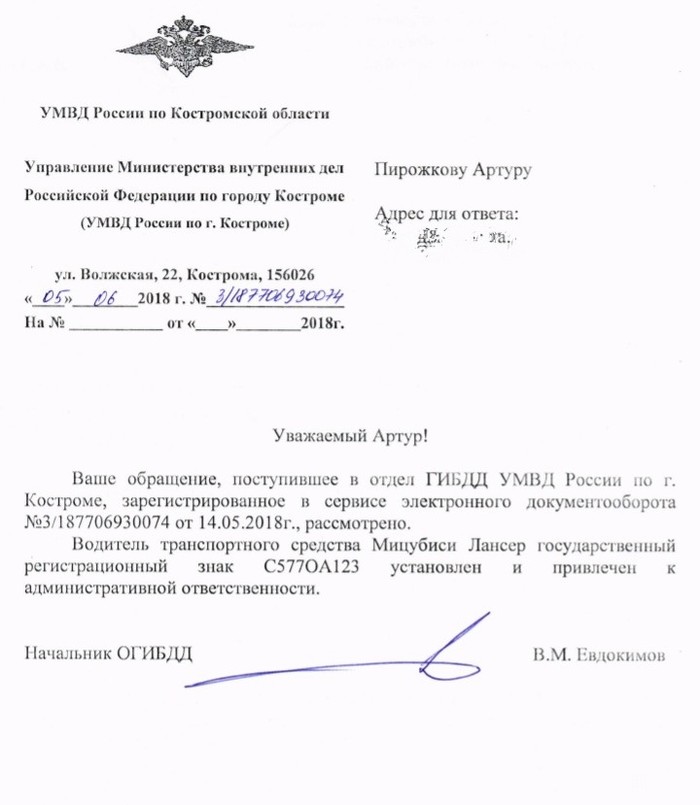 Сфоткал я это безобразие, и отправил в гибдд, с просьбой ответ прислать на электронную почту. Ответ пришёл вот такой.