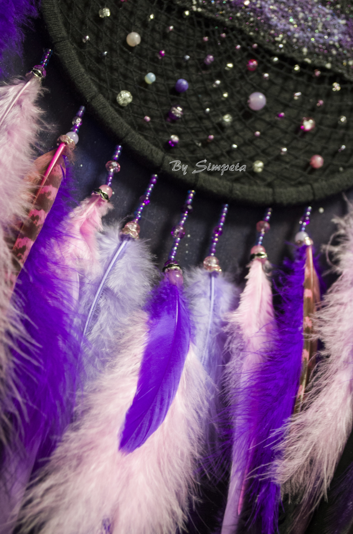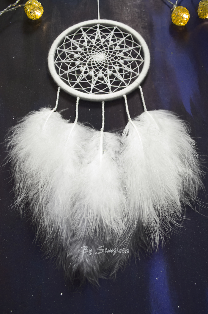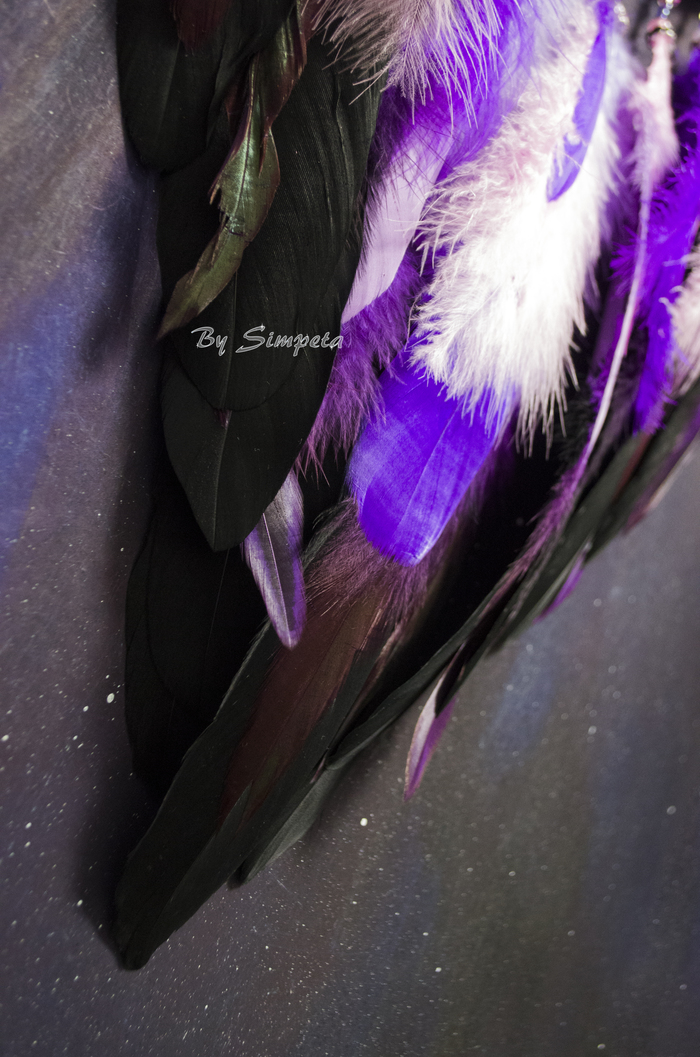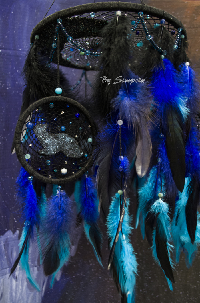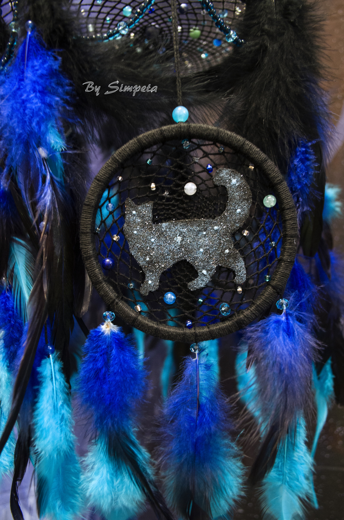 Для рукодельников: в создании использованы нити, огромная куча бусин и бисера (от граненных до искусственного авантюрина, тонированного агата и кошачьего глаза), три вида окрашенных перьев. Техника плетения - классическая.