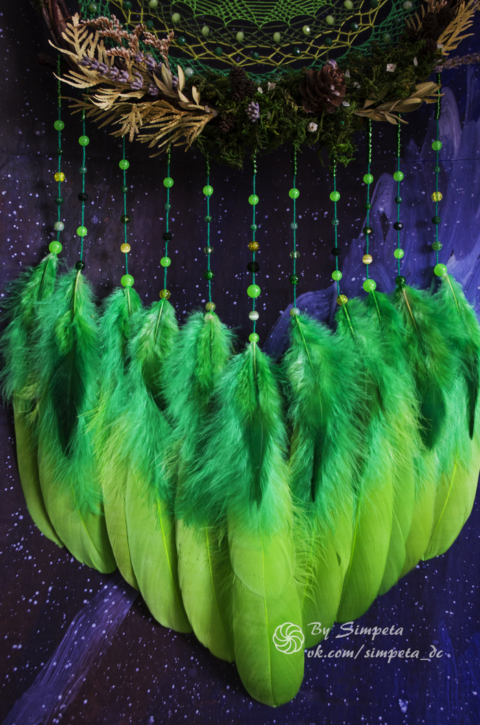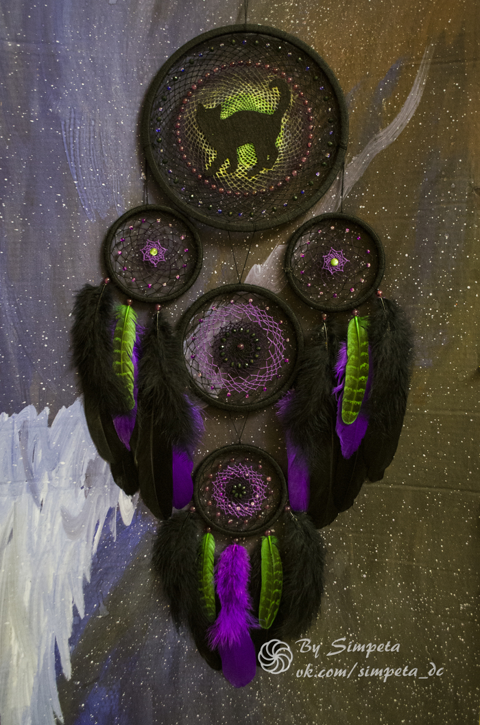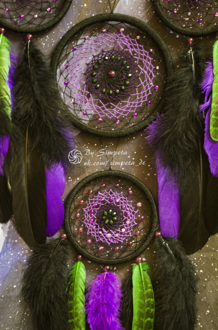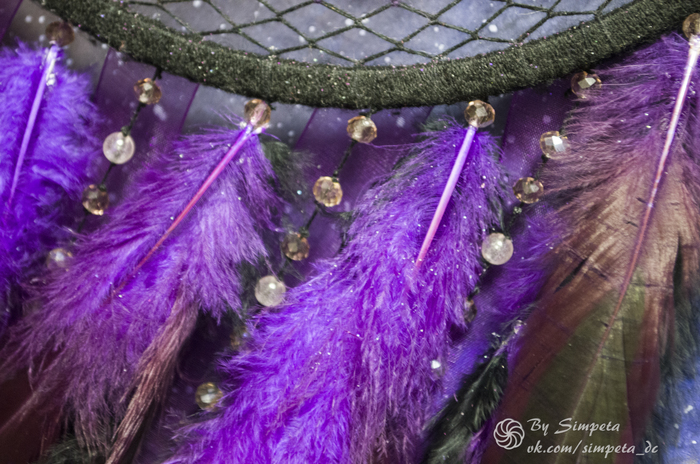 Есть легкое желание сделать ещё одну, но с более широкими махами, пусть даже темными. К тому же после обработки нити темнеют, и фиолетовый стал намного темнее, чем был раньше... В общем, будем думать :3