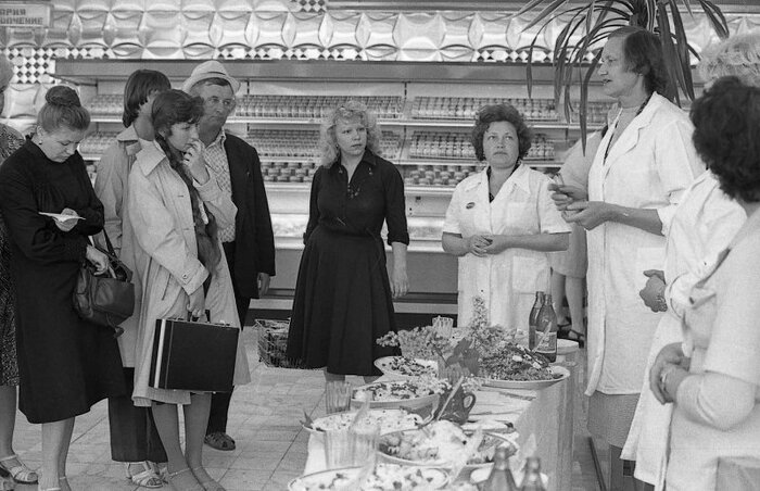 6 simpsons 1 год назад Магазин "Океан". Дегустация изделий из трубача, Владивосток. 10 августа 1987 г Показать полностью 4 СССР Магазин 70-е 80-е Длиннопост Старое фото Ещё 0
