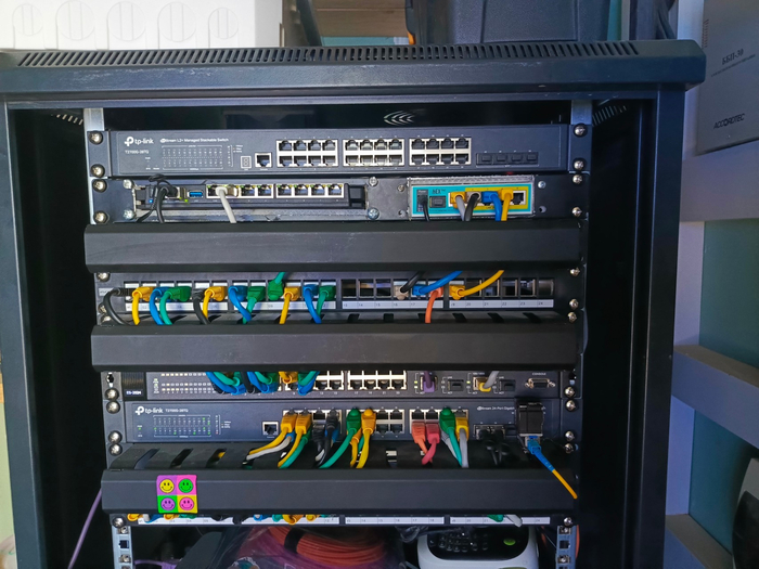Планов на будущее не много - вентиляция под стойку с фильтрами. Может если получится замена пое коммутатора на коммутатор с 1ГБ портами и отказ от hex poe. Сделать для rb5009 и мини пк индивидуальные уши чтобы каждый был на своих ушах в своем юните. Для первого уши в продаже есть, но ценник их меня немного не устраивает. А ну и патч-корды заводские короткие цветные. Но то вроде у кума есть, надо только заехать.