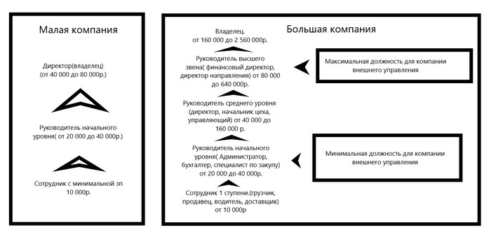 8) Внешнее управление компанией возможно только как услуга, покупаемая у внешней компании. Оплата таких услуг не может превышать ~30%. Ну тут просто запрет огромных корпораций.