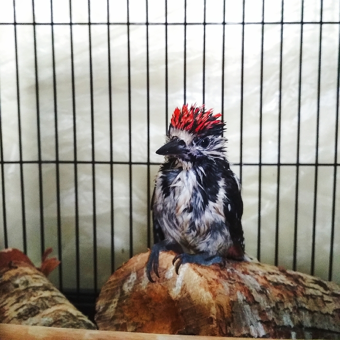 Пернатый очень контактен, любит играть. И изначально он сам начал приставать к гостям . Так что не верьте глазам своим, Клепа первый начал :D
