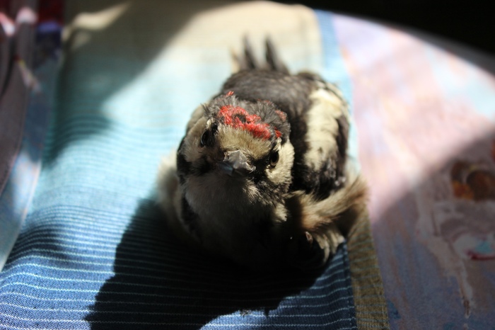 В этом "сезоне" мне написали из Рязани. Мол, нашли слетка дятла с видимыми повреждениями, не знаем что делать.