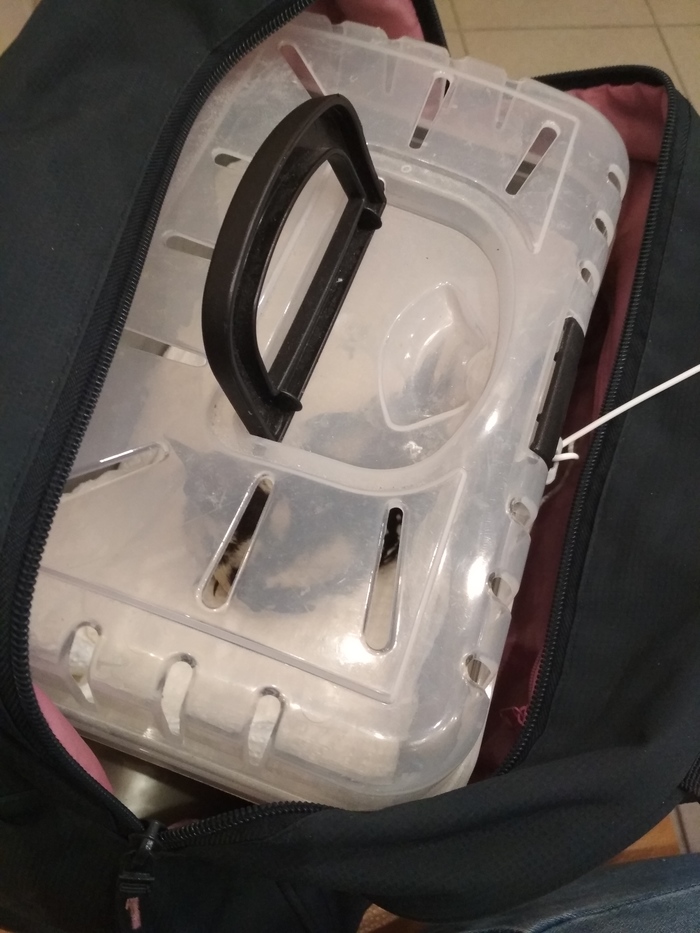И вот пару недель назад я поехала в "Воронье гнездо" за нашим хромоножкой. Посадила дятла в коробочку и мы поехали домой, в наш "Шкаф с молью"