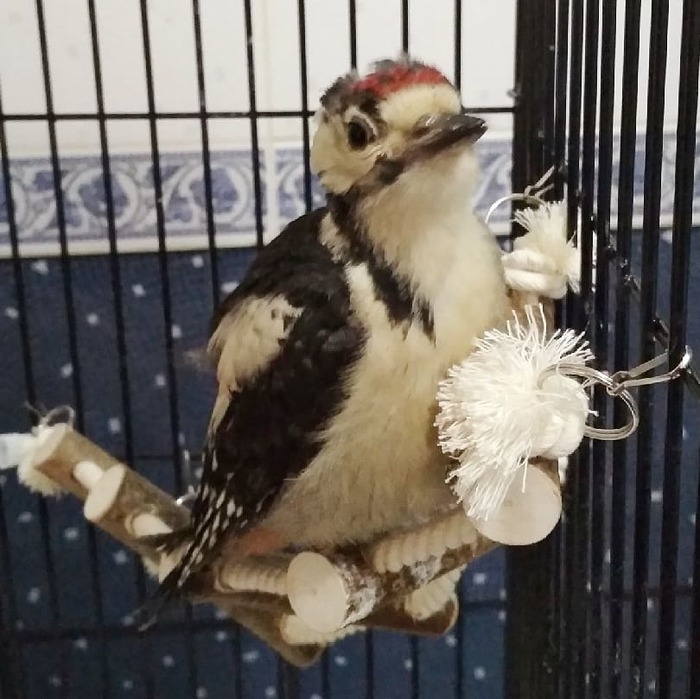 З.ы. дятлы - первоклассные взломщики, я уже об этом писала. Ее клетка была закрыта на карабин, но даже так дятел ее открыл :)