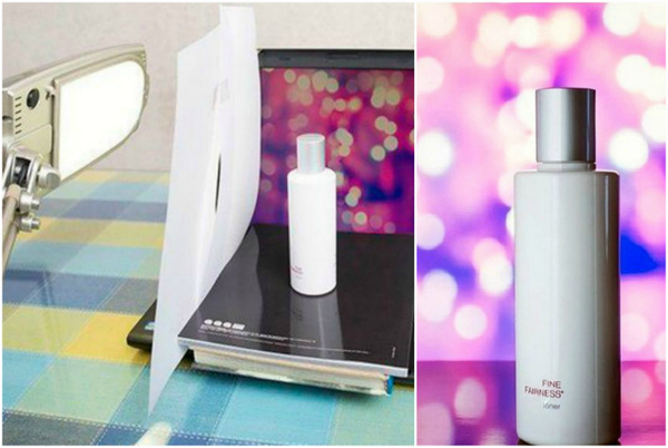 Лист бумаги, ноутбук, стопка журналов, настольная лампа и рекламное фото готово!