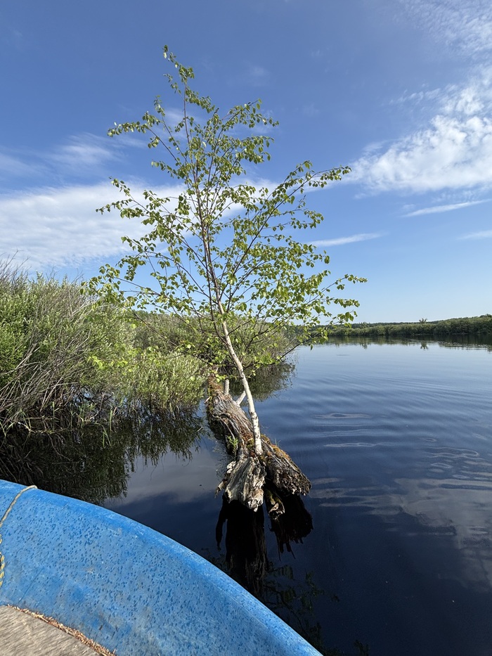 Был этой весной на одном труднодоступном водоеме, рыбачил. Проходил на лодке, сначала решил - показалось, развернулся, подьехал поближе.. Старое трухлявое бревно вырастило из себя березку. Залетело ли сережкою юная красавица, или лесина отдала последние силы и вырастила из себя дерево , кто знает.