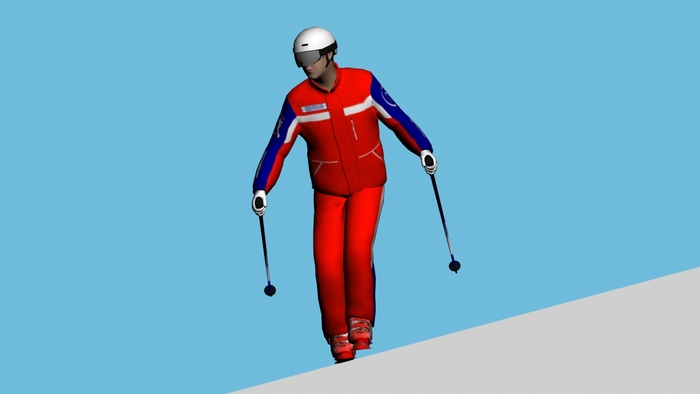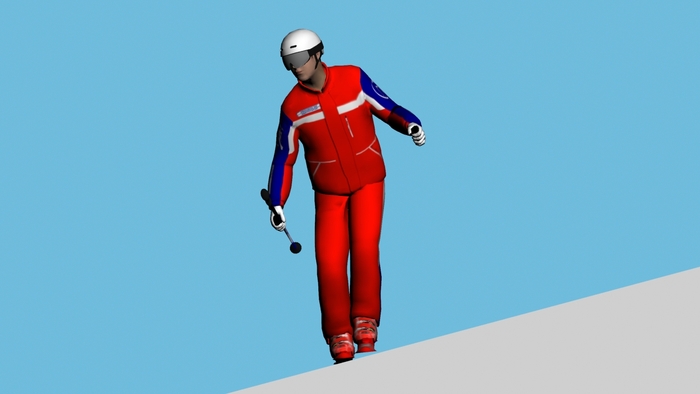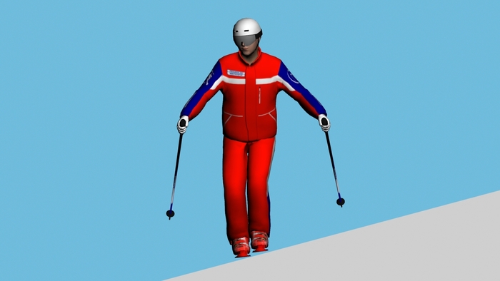 Боковое соскальзывание, лыжи раскантованы, демонстрируется угловое положение и разгрузка верхней лыжи