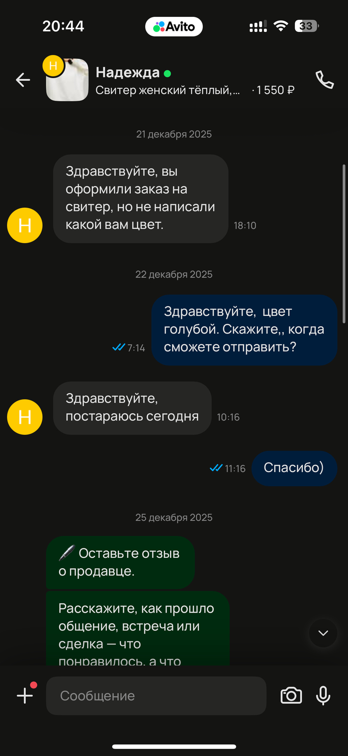 Что случилось сейчас. 19 января я оформила Авито доставкой когтеточку у девушки Аксаны, позвонив и уточнив, сможет ли она ее отправить и получила положительный ответ. 21 января Аксана продлила срок для отправки когтеточки и сказала по телефону, что постарается отправить быстрее. В итоге до 26 января она ничего не отправила и срок отправки закончился. 26 января я попробовала оформить еще раз, но Аксана перестала отвечать на звонки и сообщения совсем, хотя в сети была.