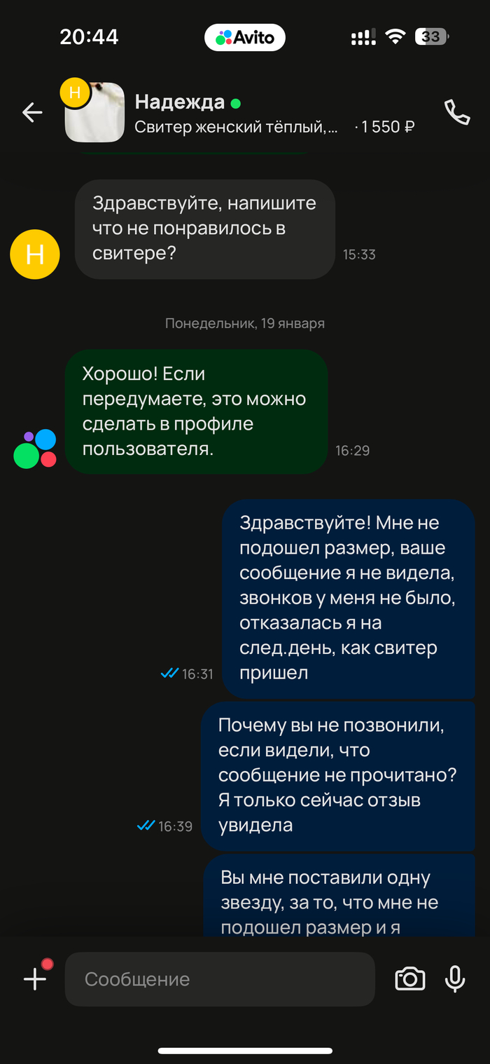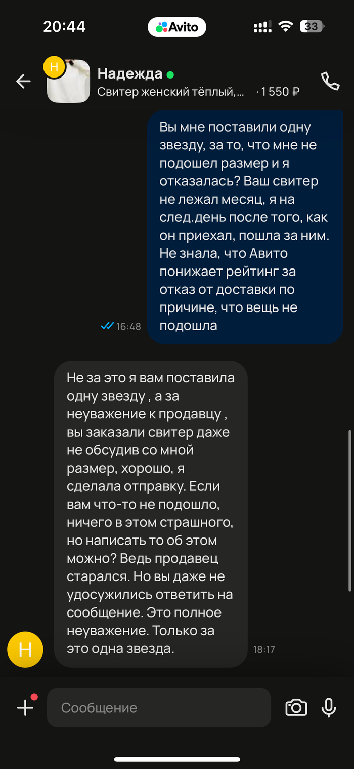 Вот мой первый пост Отказ от доставки = испорченный рейтинг Авито