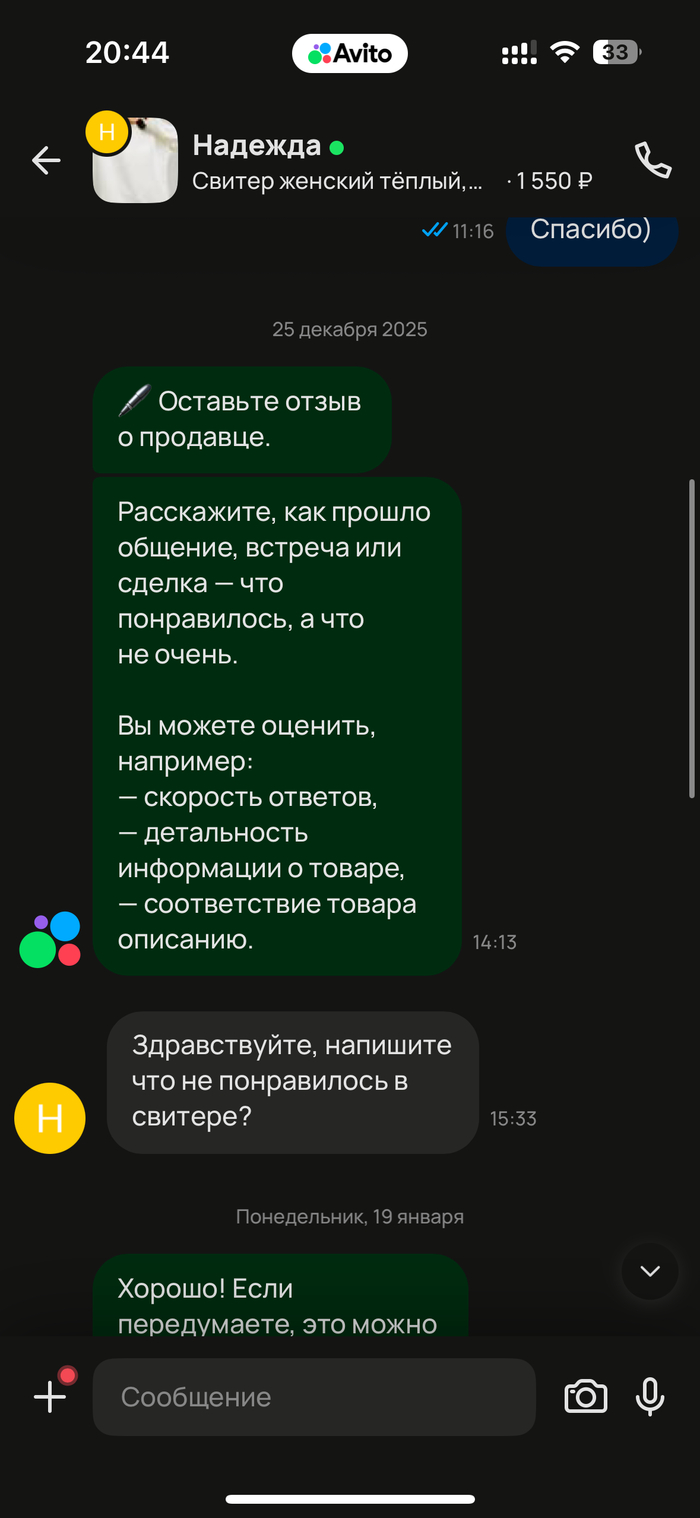 @Avito.help когда мне оставляют отзыв в котором написана неправда - это субъективное мнение, а когда я, то - это накрутка?)) Когда вся история действий с этим продавцом есть у вас на сайте и видно, что, кто и когда оформил) Существуют люди, которые накручивают себе на аккаунт отрицательные отзывы специально?)