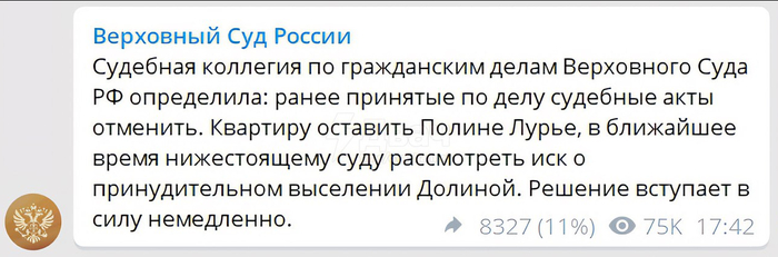 UPDATE: Суд первой присудил квартиру Лурье. Долина будет выселена