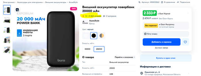 Решил приобрести повербанк на озоне, полез искать, отфильтровал по рейтингу.