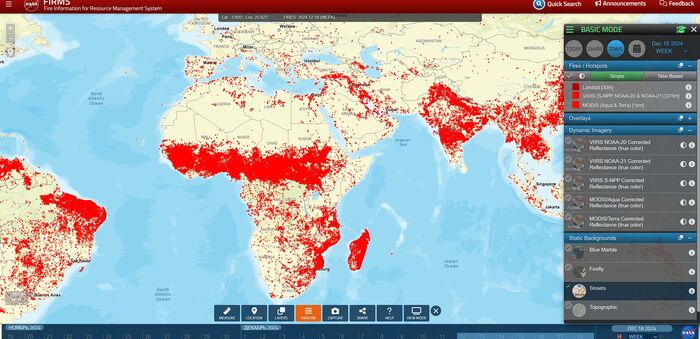 Вот кстати странно, нашёл я ресурс, который заполняет НАСА. И что интересно вдоль линии столкновения по СВО не так уж и много красных точек. А вот Мадагаскар, Африка, Индия частично - сильно много красненького (при крупном масштабе карты). На Пикабу тут разные спецы встречаются - может кто пояснит за показания спутников. При такой плотности пожаров мне кажется Мадагаскар бы нафиг сгорел весь?