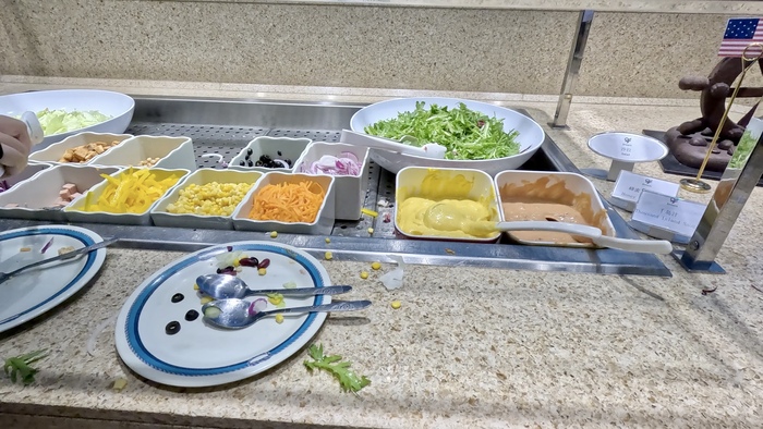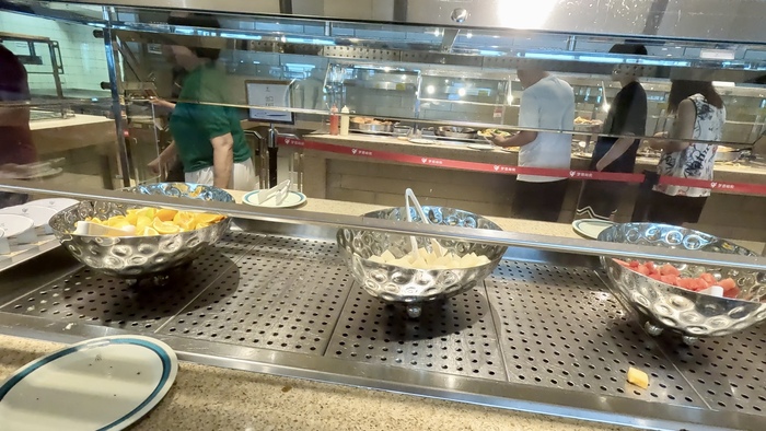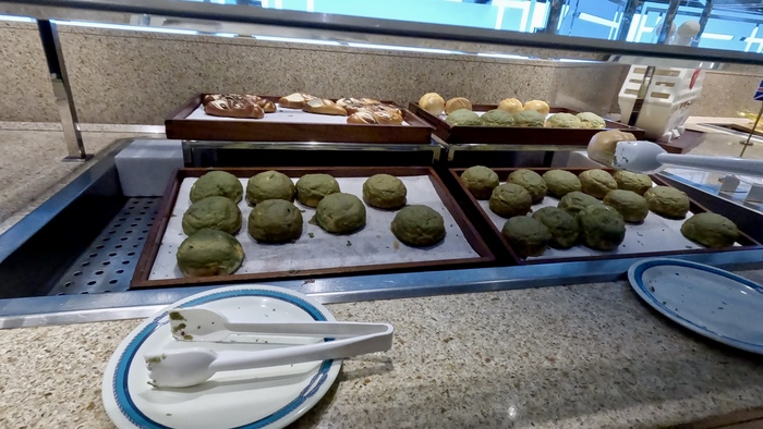 В общем проснулась и жена с первыми китайцами, и мы почапали на завтрак. К ближайшему ресторану нам нужно было идти минуту (если что, это очень мало для такого корабля). Так как жили мы на 12 этаже «палубе» (привет занудам), то мы выходили из номера, шли по коридорчику в лобби, подымались по лестнице на один этаж, и сразу попадали в ресторан.