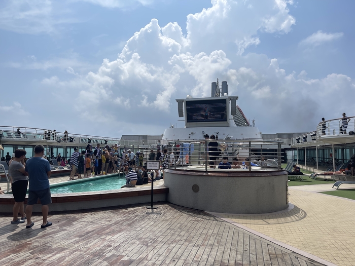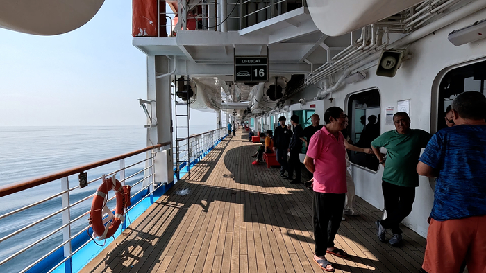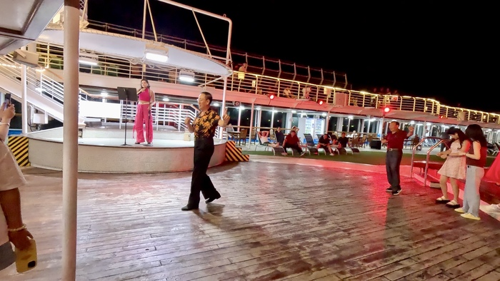 Кстати справа зона для курящих. А на верху спасательные шлюпки. Ну а после этого мы отправились смотреть шоу программу.