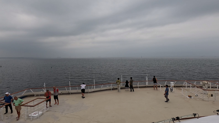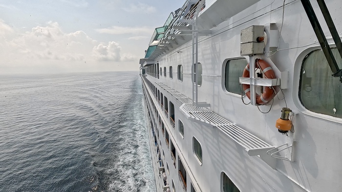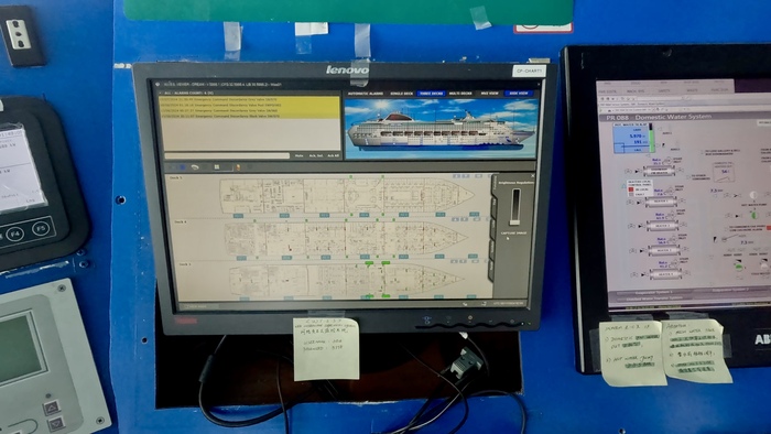 В нашем случае утро началось не с кофе, а с металлоискателя. Мало ли что мы на мостик несем. Самое интересное, что путь на мостик проходил мимо нашей каюты, то есть мы вышли с каюты, пришли в точку сбора на нашем этаже, нас обыскали, и мы вернулись к каюте.
