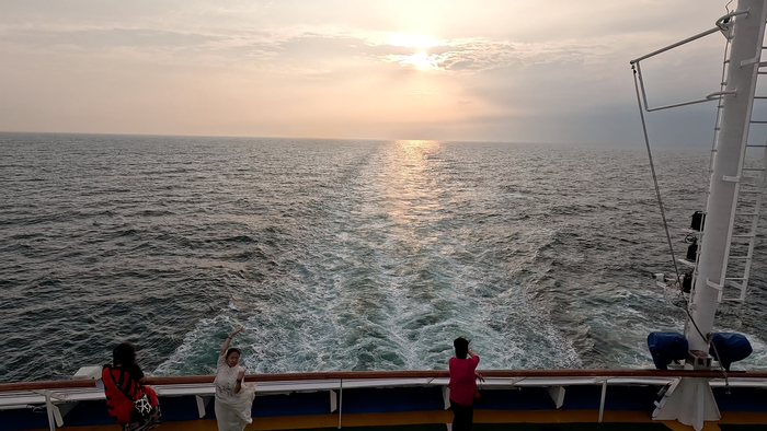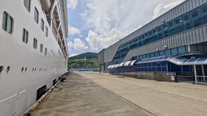 На четвертый день мы должны были пришвартоваться в городе Нагасаки, но так как выбрали не очень удачное время для круиза, мы пришвартовались в новеньком порте провинции Сасебо, префектура Нагасаки, остров Кюсю. А неудачное время, потому что, как раз, во время нашего круиза ожидалось землетрясение, и возможность цунами, по этому нас перенаправили в другой порт. Мы были расстроены, потому что были готовы к прогулке по Нагасаки, а теперь отправлялись в непонятное место. Тем не менее, Япония есть я Япония, и с хорошим настроением мы начали ждать швартовки корабля.