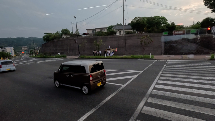 Если присмотреться, то на заднем фоне идут люди с каким то макетом корабля. Что за празднование было я не знаю, и мне, если честно не интересно. А вот смотреть на бесконечный поток таких мимимишных машин, очень даже интересно. Они все на хлебушек похожи. Все машины новые. Практически все машинки японского производства, за редким исключением люксовых авто от Мерседес или BMW.