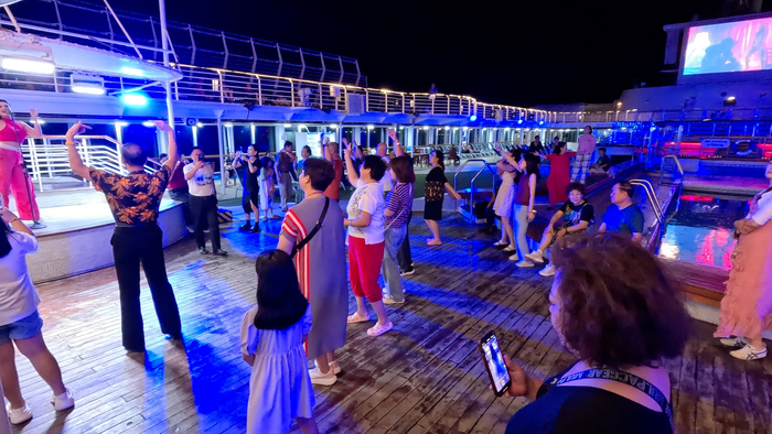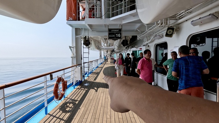 После этого мы отправились на капитанскую вечеринку, где он рассказывал о корабле и так далее, а в конце пригласил всех записаться на тур по капитанскому мостику, после его слов я ни ждал ни минуту и отправился на запись. Экскурсия была одна, на пяты день круиза (об этом отдельный пост). Записавшись на экскурсию, которая стоит 25 долларов с человека, мы отправились отдыхать в номер. А после отдыха пошли на ужин. Именно в очереди на этот ужин я ронял что китайцы не такие уж и добросовестные.