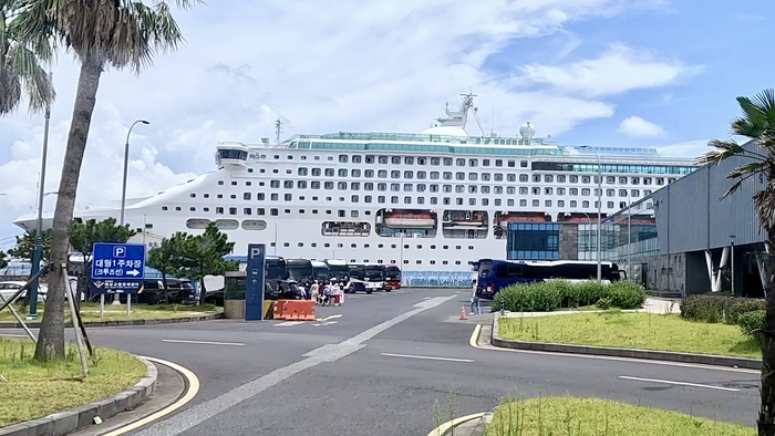 Всех пассажиров разделили на группы с номером (от 1 до 15). Вечером, на кануне, нам дали расписание на следующий день, в котором было указано время, в которое наша группа должна была собраться в ресторане и сойти на берег. Делается это для того, что бы избежать столпотворения. У каждой группы было свое время, и чем раньше ты покидал корабль, тем позже возвращался на него. С Отой нужно было иметь копию паспорта, а оригинал оставался на корабле. Это правило ввели недавно, после того, как с экскурсий не возвращались люди, и как нам сказал гид, каждый раз это было минимум три человека, которые хотели бы найти лучшую жизнь в Японии. Плюс с собой мы брали ключ от номера (он был именной), и на выходе из судна мы его сканировали, что бы персонал знал сколько людей на суше, а сколько на круизе.