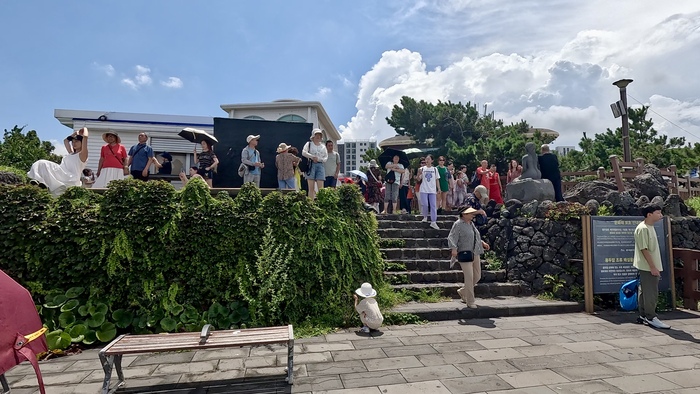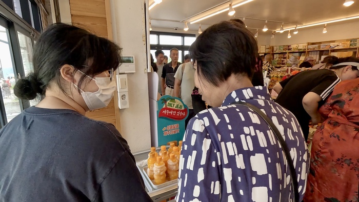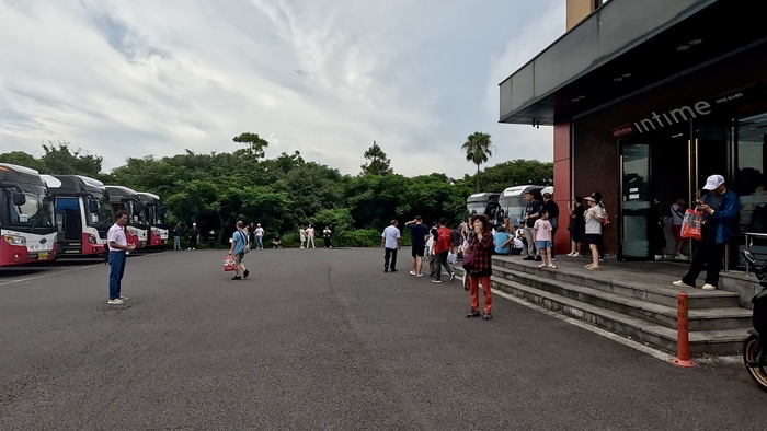 Сразу же был положен хуй на такую красоту, на такой вид, и на гида разом. И мы отправились в магаз. Конечно в магазине была ебейшая очередь, но хотя бы было прохладно. Мы купили знаменитый апельсиновый сок острова Дже Джу, и не знаменитое пиво того же острова.