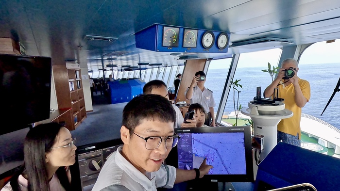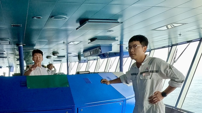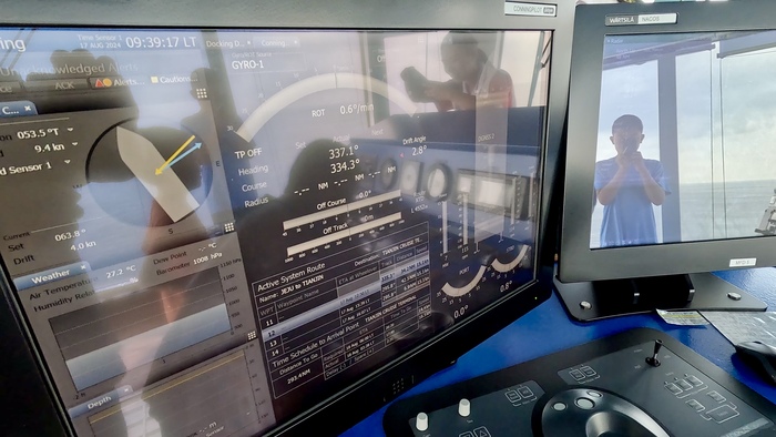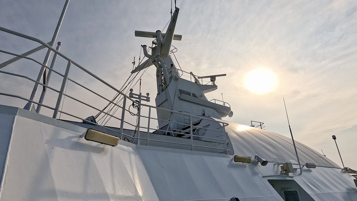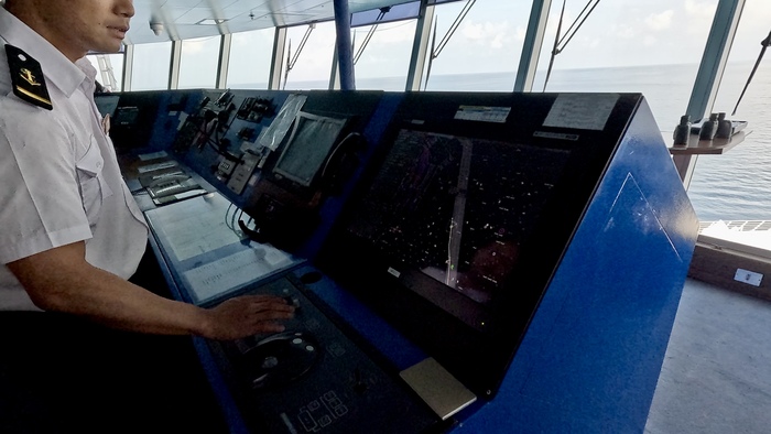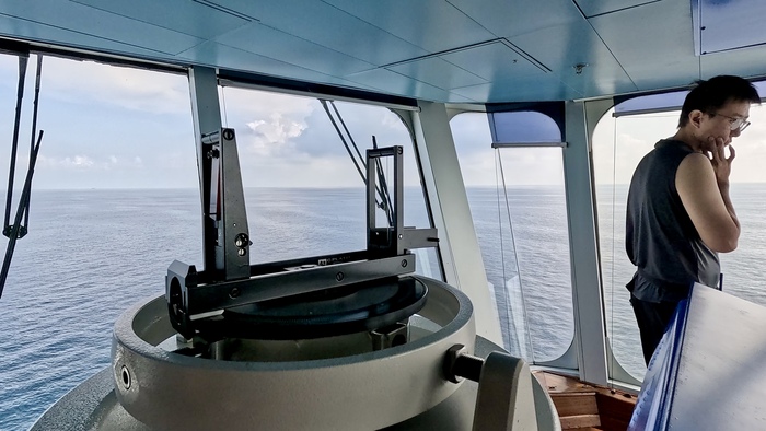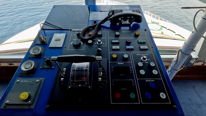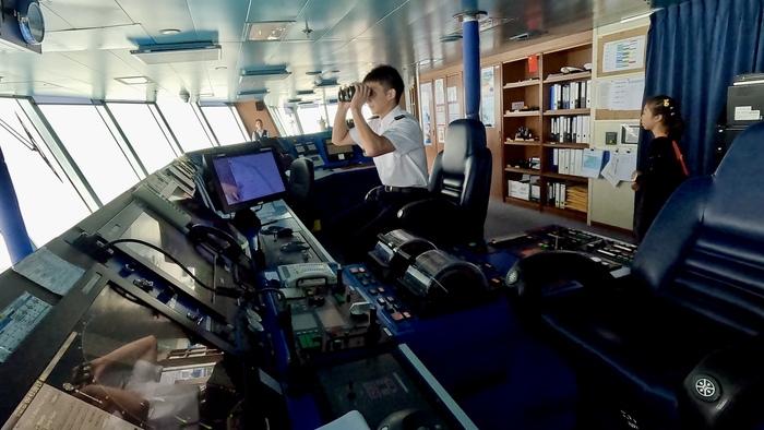 Капитанский мостик немного шире самого обоснования, что бы был максимальный обзор. Одна из причин, это поиск «волн-убийц», которые могут появиться внезапно, и с любой стороны. По этому на мостике есть работник, который бегает то вправо и лево, и задумчиво смотрит в бинокль.