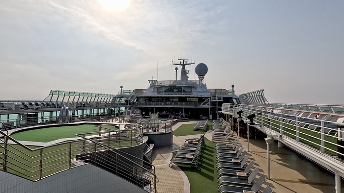 А слева, собственно бар, на котором я провел много времени. Днем он забит бабушками, внуки которых в бассейне. А на баре хорошо, тенек, вот они там и тусуются до сумерек. Ну а с заходом солнца появляюсь я, с бутылочкой чего то, купленной в Дюти фри на корабле (да, так можно) и прибухиваю, думая о высоком.