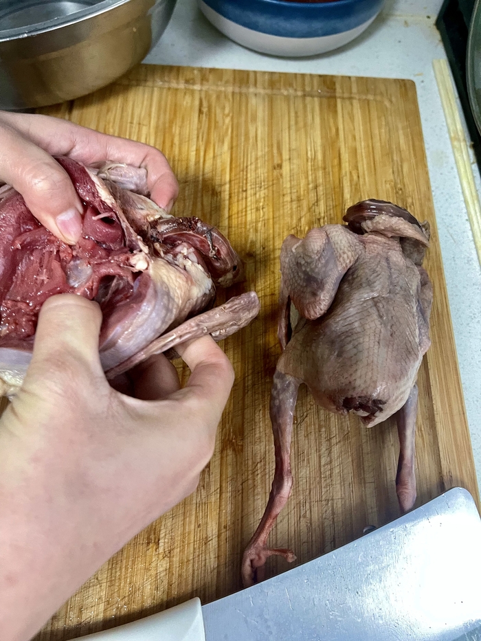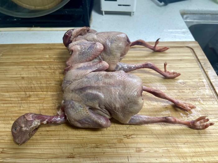 Разморозили голубей. Здесь их продают целиком, с головой и лапками. Дальше фото, и впечатлительным лучше не смотреть.