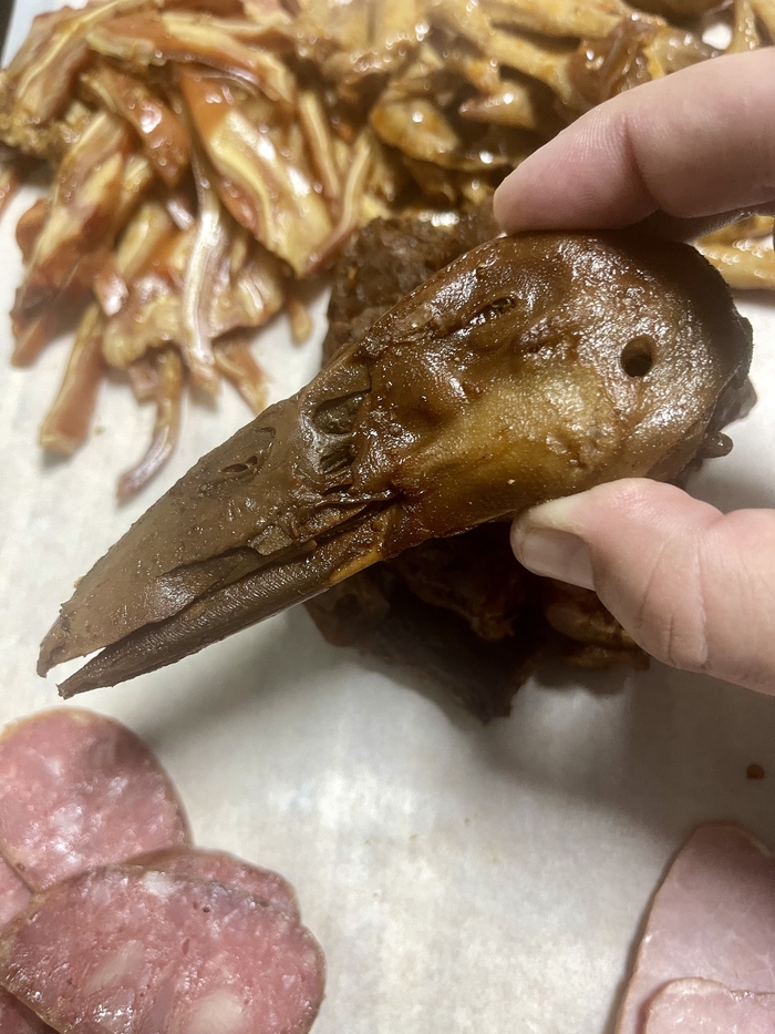 Недавно наткнулся на видео, где мужик показывает, что в Китае ему к пиву, в качестве закуски, привезли утиную голову.