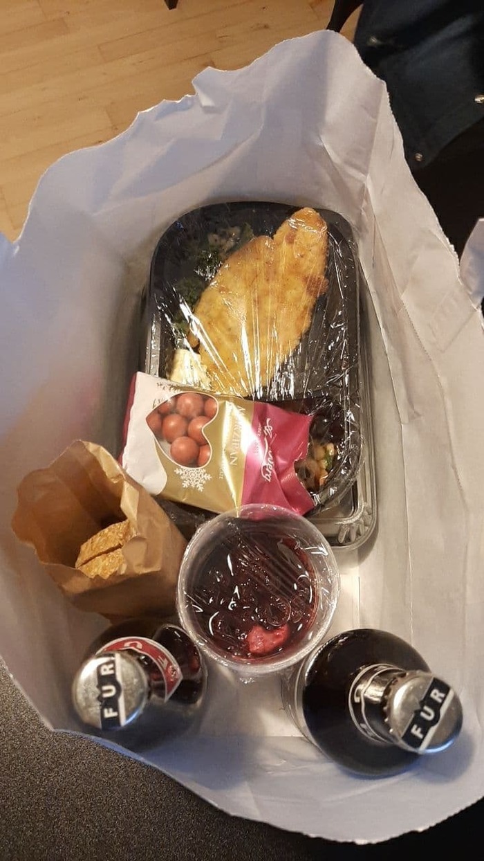Новый год прошёл ужасно скучно 😁 коронавирусные ограничения действовали весь декабрь-январь, поэтому мы просто сидели дома, пили алкоголь и смотрели обращение королевы. Единственная радость - мы закупились самой разной новогодней едой, а ещё нам пришли обещанные подарки от работодателя. У меня была возможность выбрать из трёх вариантов, и в итоге мне пришли аж два подарка - "Чистое и хорошо идущее с водой" (набор полотенец) и "Традиционные сладости". Ещё там был вариант "Классический белый продукт", этим "продуктом" оказался набор белых тарелок от Royal Copenhagen.