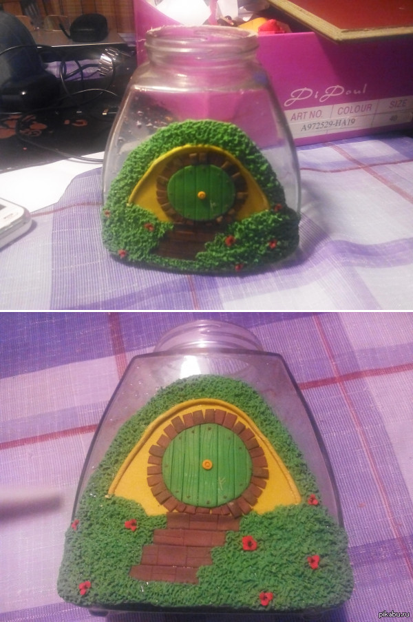 3 sleepyowl65 сделала подруге на день рождения такую вот банку 10 лет назад из полимерной глины Моё Полимерная глина Хоббит Банка