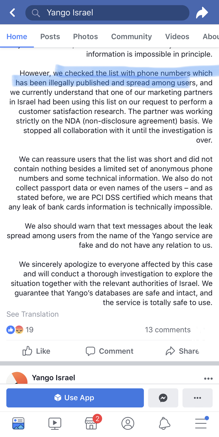 ... но по факту передают компаниям, которые занимаются маркетинговыми исследованиями. В сообщении на Facebook в официальной группе, всё же, говорится, что передали номера другой компании.