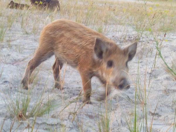 К нам опять пришли кабаны, и мы кормили их хлебом из рук. Днем они какие-то добрые. А ночью смотришь на выход палатки, а там тень хрюкает и тыкается пятоком во вход. Страшно!!!