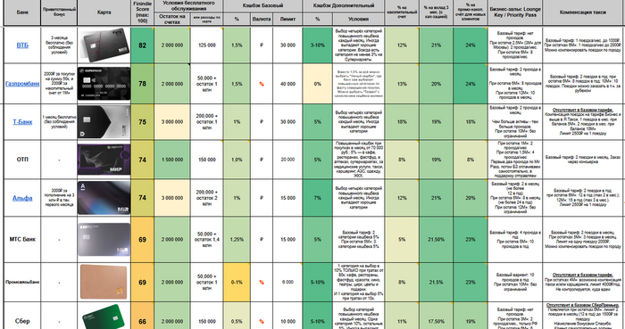 Третье место у прошлогоднего лидера - Т-Банка. Он, к сожалению, очень медленно продвигается вперёд, а в некоторых преимуществах (количество проходов в бизнес-залы) - наоборот, сделал шаг назад. Учитывая небольшие погрешности, на 3 место также можно поставить Альфа-банк и ОТП.