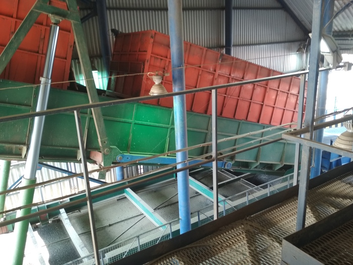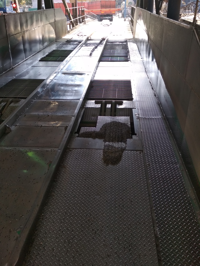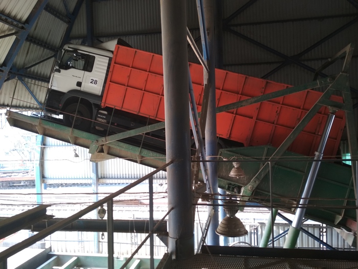 Итак, конструкция автоопрокида вполне проста, по сути платформа на раме с возможностью поднимать один край с помощью гидравлики. На заводе где я работаю их два, и они совмещены с автомобильными весами, то бишь под рамой находятся датчики фиксирующие вес. Их 6 и 8 на первом и втором, называются кстати -тензодатчики. на фото ниже расположены те самые автоопрокиды, у нас они крытые.