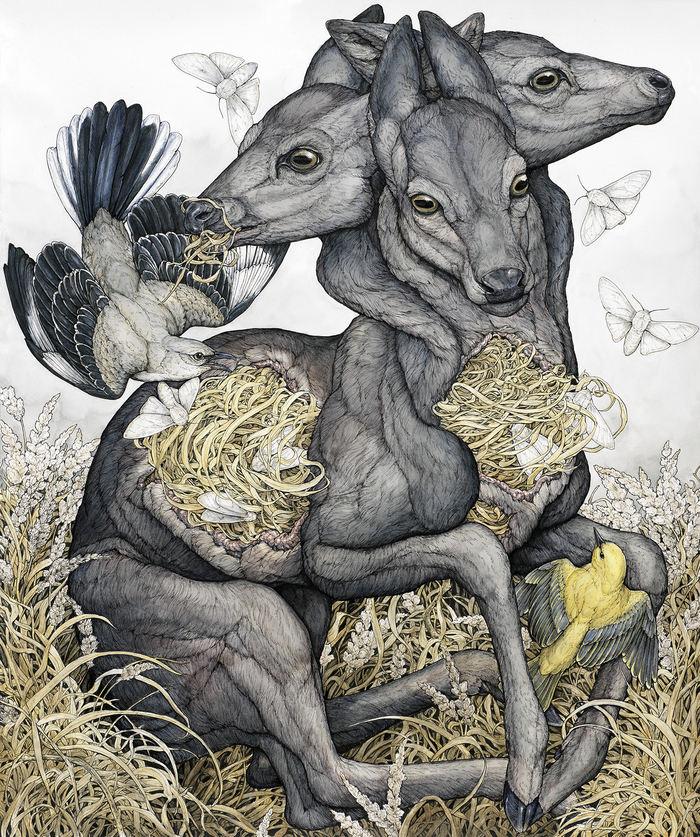 Продолжаем тему лёгкой "мрачности" с американской художницей из Миссури. Как и многие другие, она вдохновляется природной тематикой, привнося в неё некий оттенок красоты угасания жизни и неотвратимости, цикличности бытия.