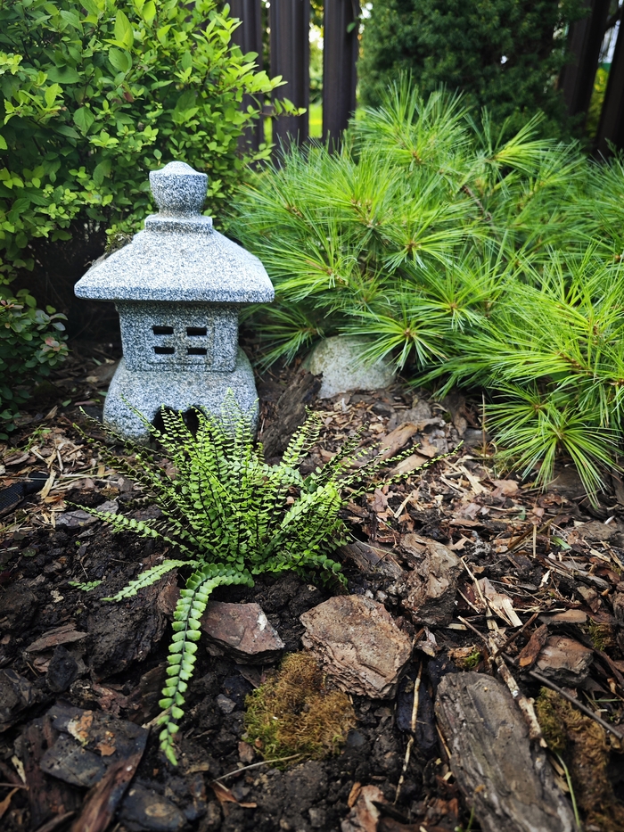 Вторая добыча- папоротник костенец. Приладила его в теневой зоне.
