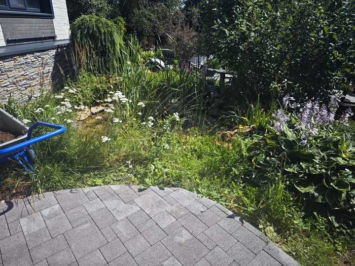 Вы видите пруд? А он там есть! За 4 года стройки, он пережил многое. В него падали строительные блоки, в него пару раз сливали какую то строительную дрянь, он зарос камышами и тиной, но он оставался домом для местных жаб.